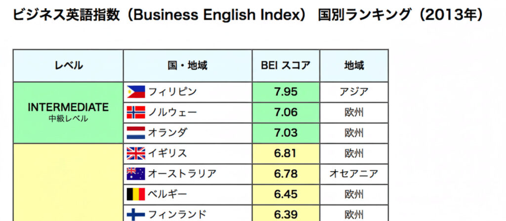 国際的なビジネス英語指数(BEI)のランキングでは、フィリピンが世界第1位を獲得しています。