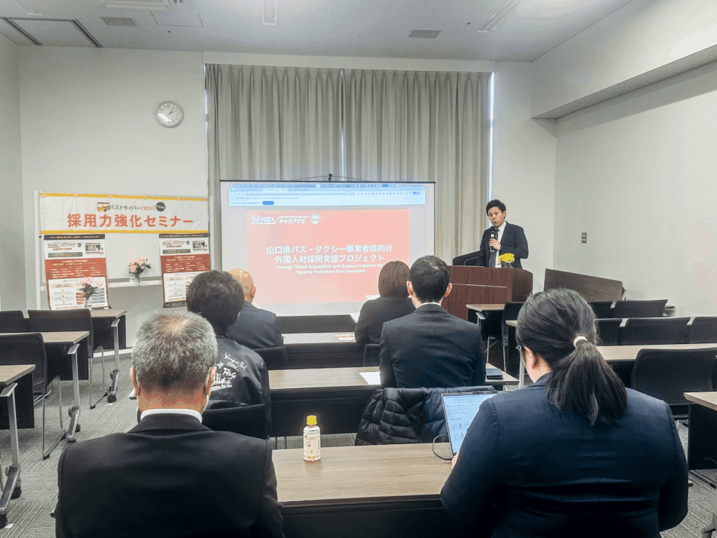 山口県内の公共交通インフラを支えるバス・タクシー事業者の皆様に向け、外国人運転士採用の「今」を伝えるセミナーを開催いたしました。
