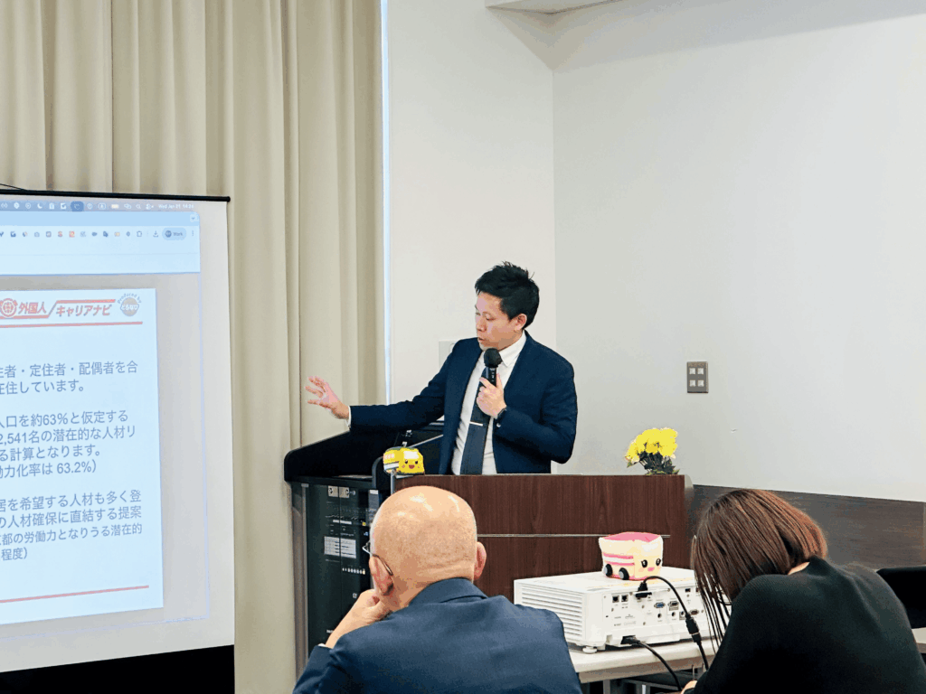 当日は、山口県観光スポーツ文化部交通政策課の磯部様にもご登壇いただき、県内の交通情勢を背景とした外国人材活用の必要性が語られるとともに、深刻な人手不足への対策として注目される「特定技能」の活用法、具体的な採用・教育の流れ、そして成功の鍵を握る受け入れ態勢の整備にいたるまで、山口県内での外国人採用を成功させるための重要ポイントを詳しく解説いたしました。