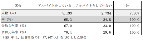 また、独立行政法人 日本学生支援機構(JASSO)の『令和5年度 私費外国人留学生生活実態調査』によると、全体の 65.2%が何らかのアルバイトに従事していました。
